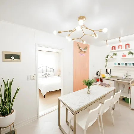 Seoul City Certified, Hongdae 2Min, 2Br-1Lr Apt also offers a fully equipped kitchen. Donggyodongsamgeori bus stop is in close proximity to this accommodation.